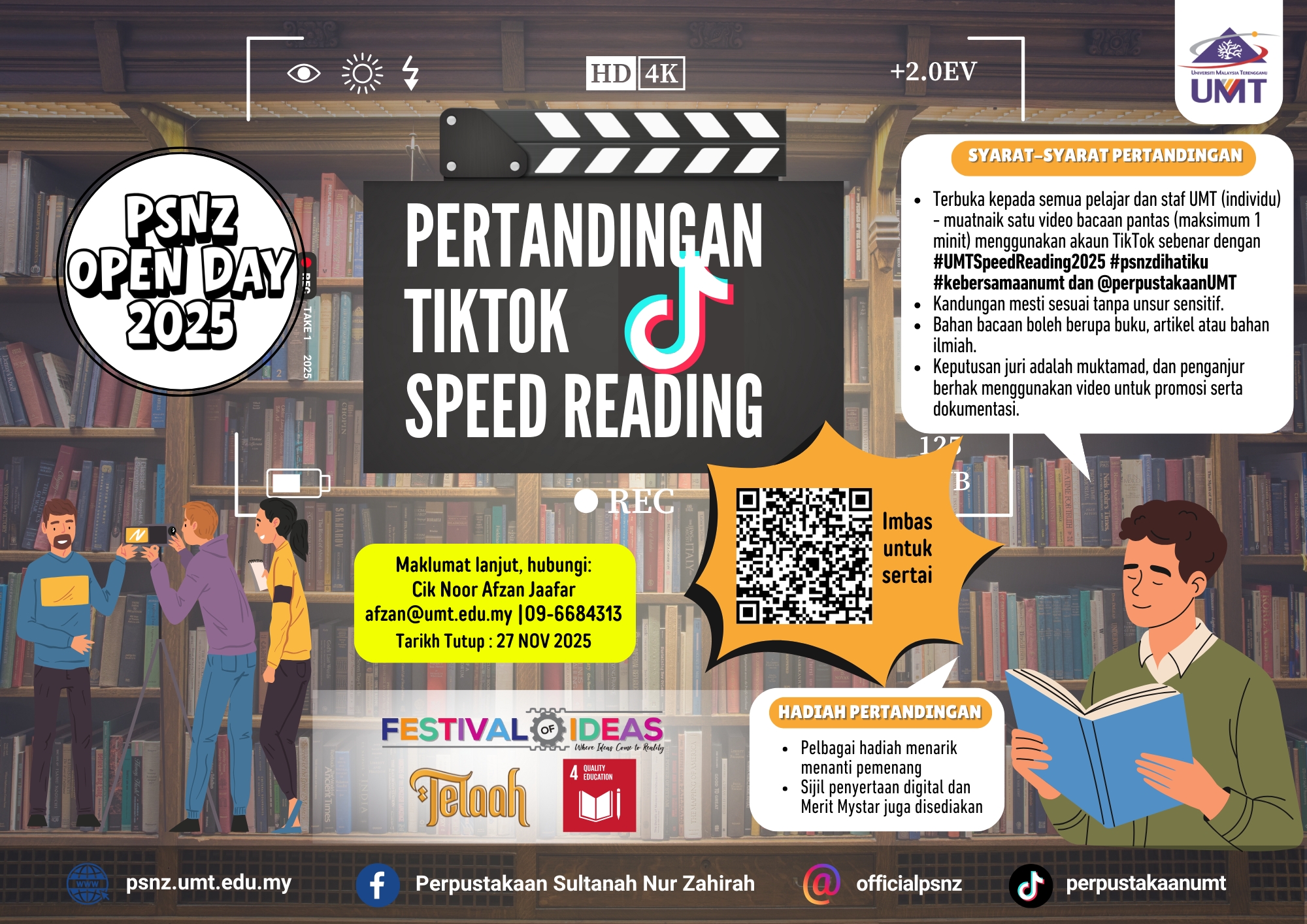 Pertandingan Tiktok Speed Reeding 23 February, 2026 Pertandingan TikTok : Speed Reading bertujuan untuk meningkatkan minat membaca dalam kalangan pelajar dan staf melalui pendekatan kreatif menggunakan platform Read More »
