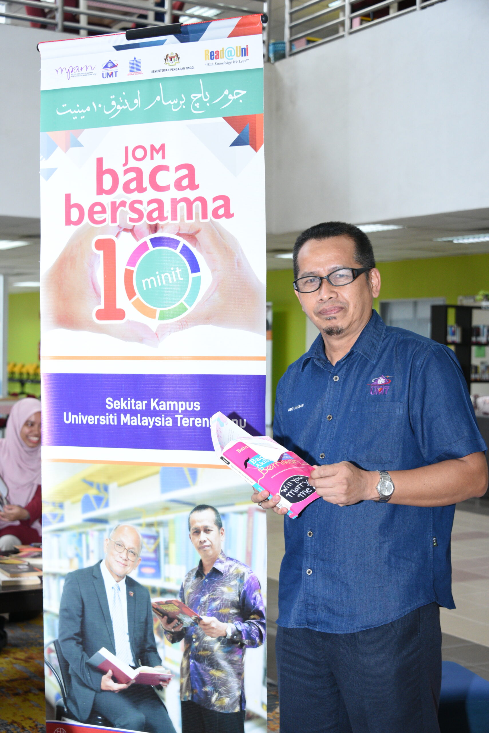 Program Jom Baca 10 minit yang telah diadakan disekitar kampus dan perpustakaan adalah bagi memberikan sokongan terhadap kepentingan membaca dan mereka berhenti sebentar daripada melakukan aktiviti rutin selain membaca untuk tempoh 10 minit. Diadakan pada tarikh 18 Mei 2023 di sekitar Kampus UMT dengan penyertaan seramai 409 orang meliputi pelajar dan staf UMT.