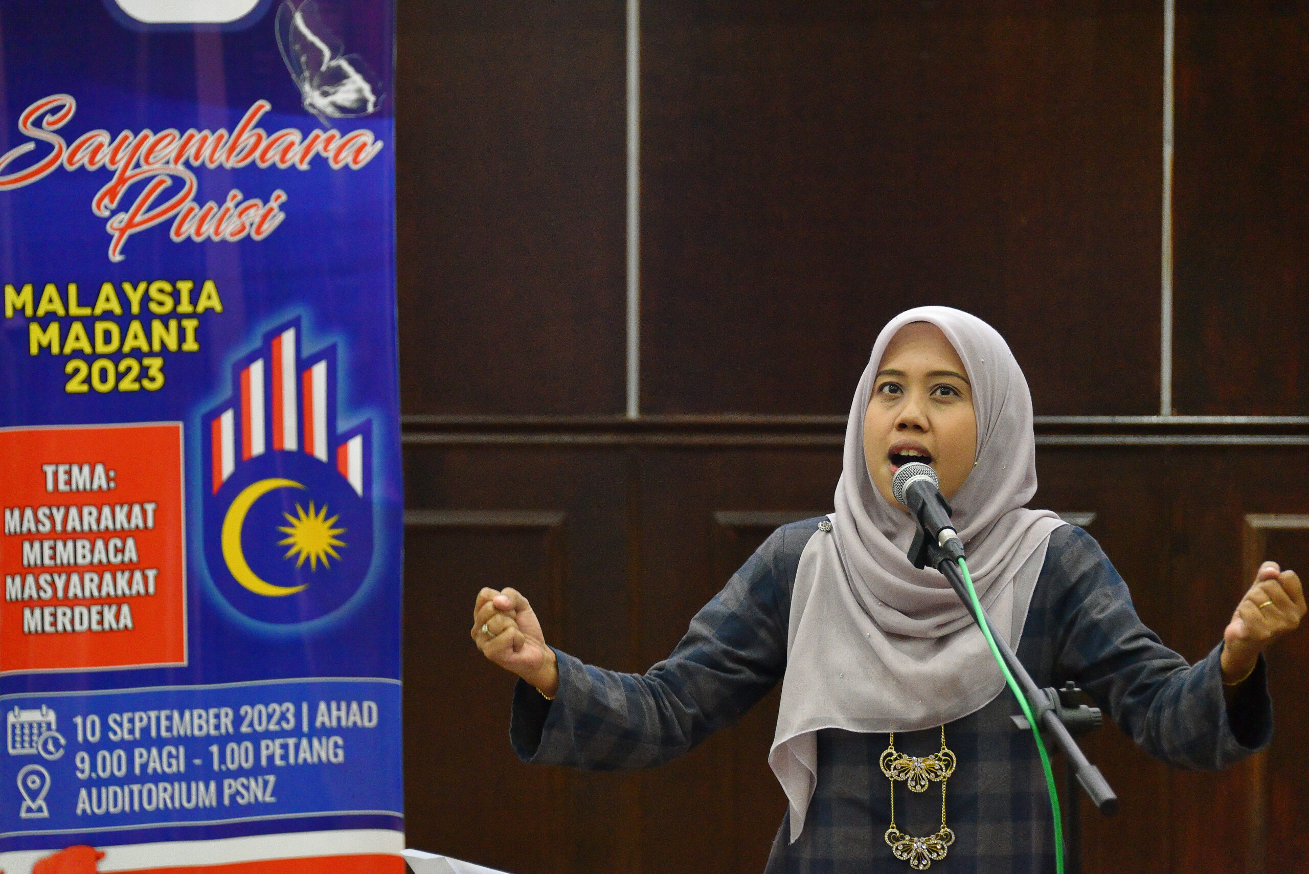 Program sayembara puisi ini adalah bagi menggalakkan peserta menggunakan bahan bacaan perpustakaan sebagai karya dalam deklamasi serta menyemai sikap mencintai karya-karya hasilan tempatan. Telah diadakan pada 10 Sept 2023 di Auditorium PSNZ dan disertai seramai 30 orang peserta.